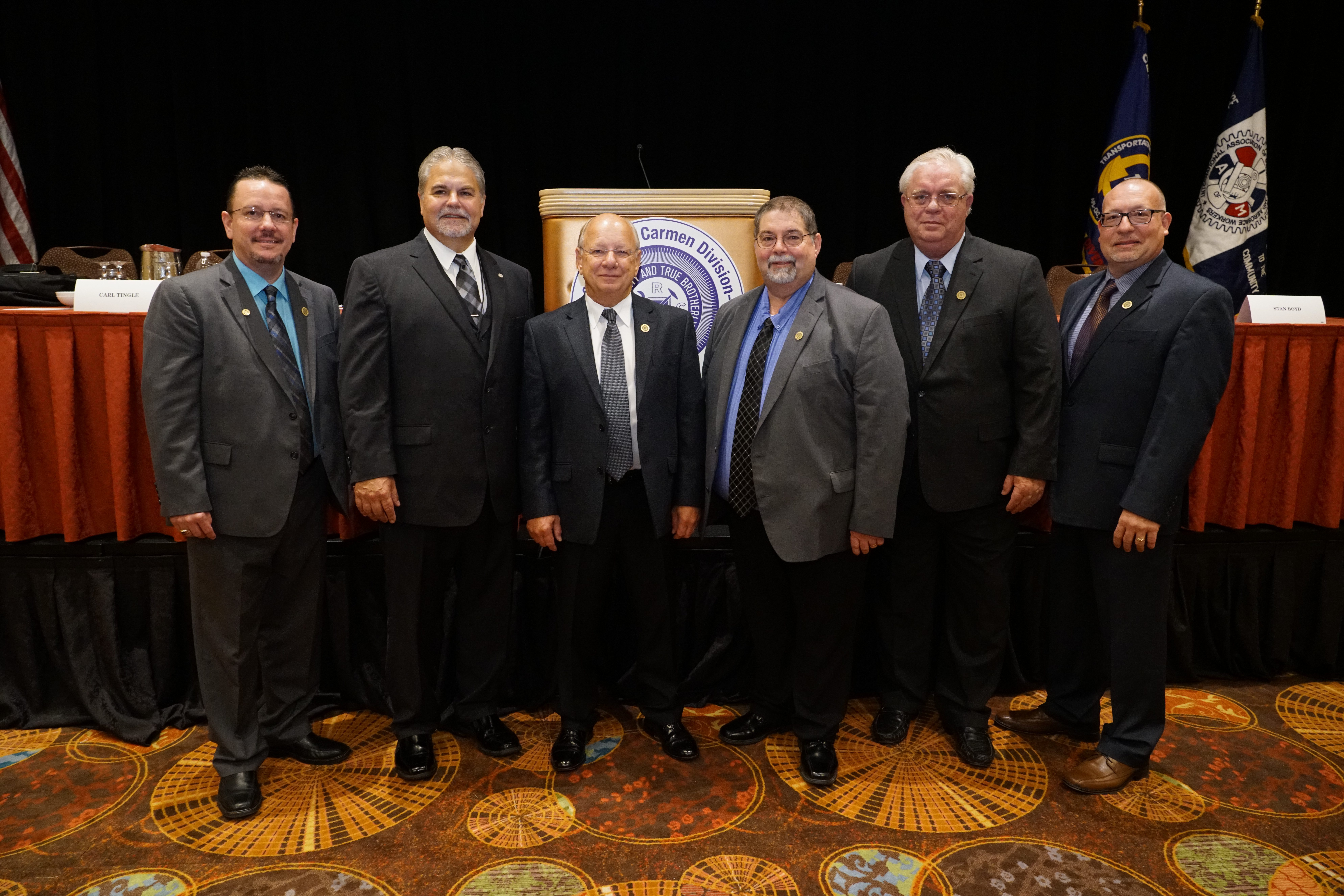 Newly elected Carmen Division Officers – Carmen Division President Rich Johnson, Assistant General President Don Grissom, General Vice-President Carl Lakin, Carmen Executive Board Chairman Kevin Loftin and Carmen Board members Robert Keppen and Darren Trieber.