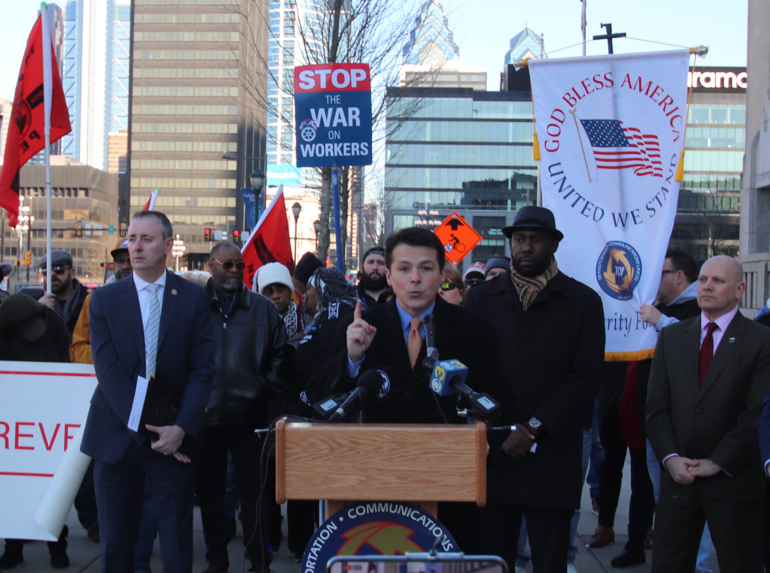 TCU Vice President and National Legislative Director Bill DeCarlo speaks at the rally in Philadelphia