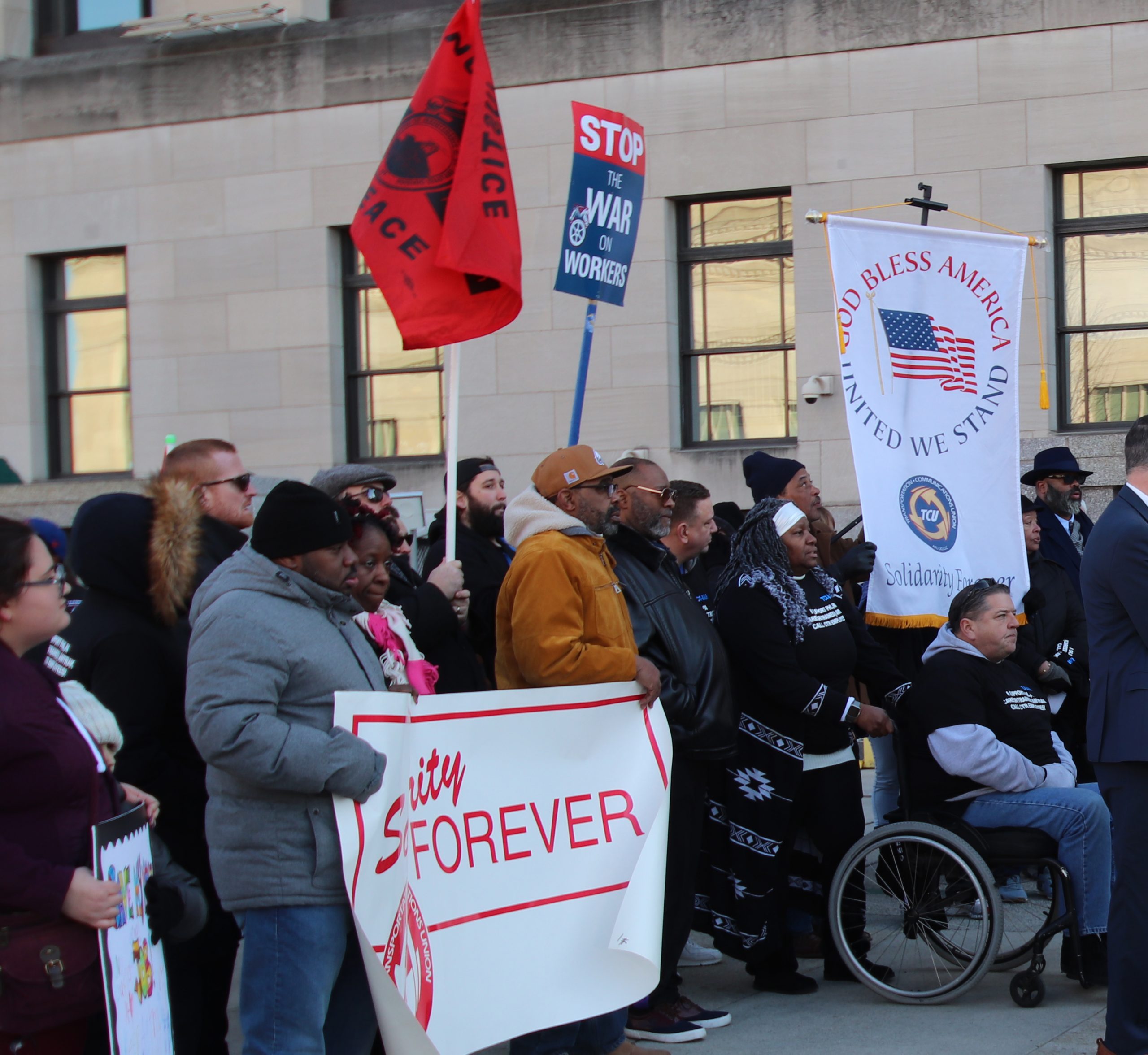 Congressmen Brendan Boyle (D-Pa.) and Brian Fitzpatrick (R-Pa.) joined TCU-IAM members in front of Amtrak’s William H. Gray III 30th Street Station to protest the nation’s passenger rail corporation’s unjust removal of good, union-protected jobs. The lawmakers were also be joined by Numa St. Louis, District Director for Congressman Dwight Evans, and Jim Mathews, President of the Rail Passengers Association.