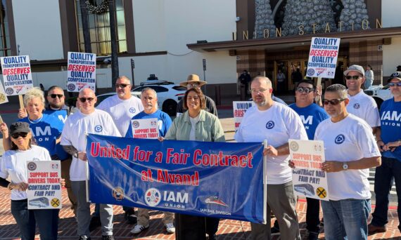 LOS ANGELES, CA – The Transportation Communications Union/IAM (TCU/IAM) held a powerful informational picket on December 5, 2025, at Los Angeles Union Station, calling on Alvand Transportation to return to the bargaining table and negotiate a fair contract for the workers who keep their operations running every day. TCU/IAM members, IAM Rail Division, and allies