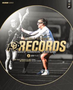 Jess currently holds the CU record for caused turnovers, 42, and holds the CU record for caused turnovers per game, 2.2 and first in PAC-12. During her season, she also led the Pac-12 in caused turnovers.