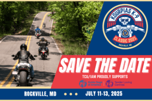 Mark your calendar! The 6th Annual Kourpias K9 Classic Ride will be held July 11-13, 2025, at the TCU National Office, 3 Research Place, Rockville, MD, where this year’s ride will showcase the stunning scenery and rich history of the DMV region.
